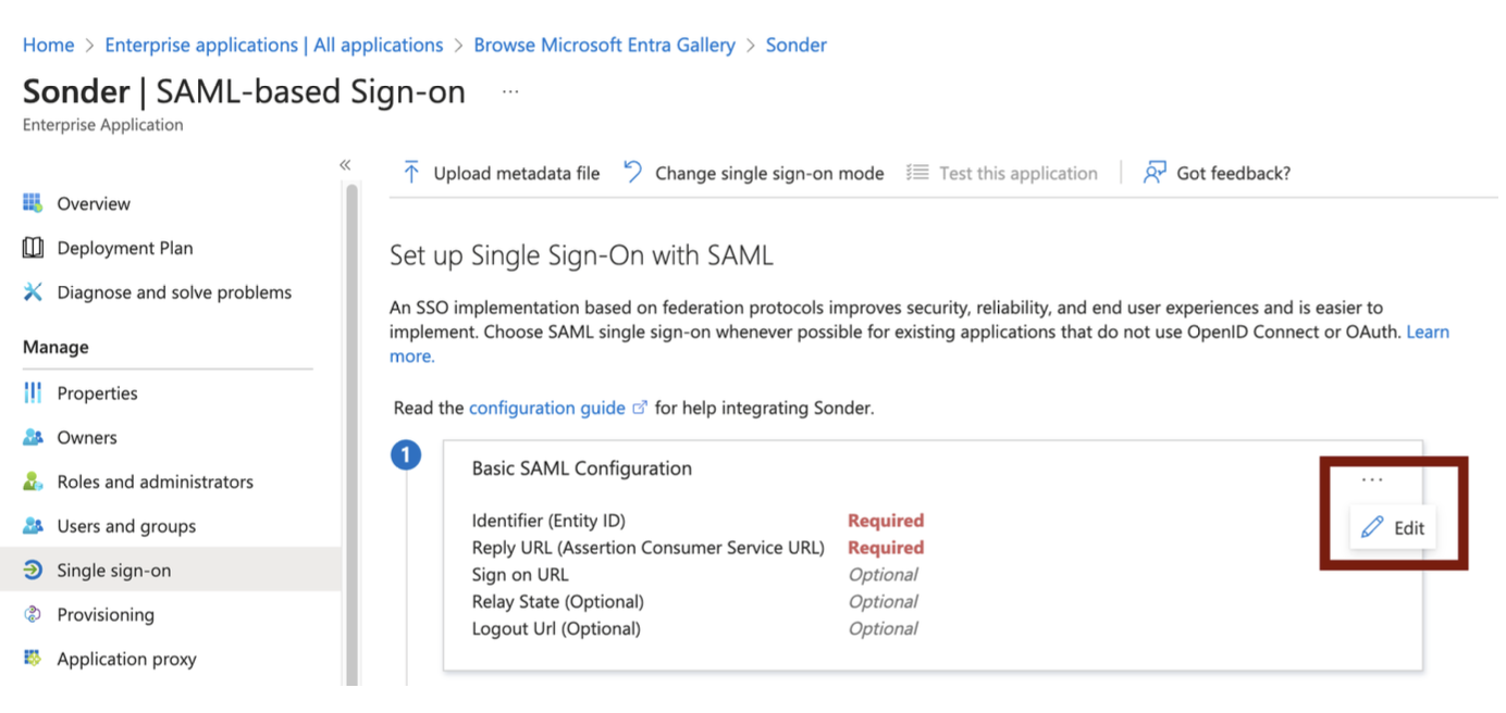 The following is an example SSO Configuration using Microsoft Entra ID (formerly Azure Active Directory) and is purely used for demonstration purposes. If you have a different SSO provider, you will need to use that provider's instructions for SSO configuration.